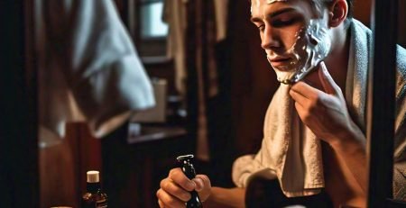 razor blade is still sharp enough and replace it if necessary; here you can roughly base your shave on the stated service life. Now it’s time to get to your stubble: pull the skin where you want to shave upwards, as beard hairs usually grow towards the chin, meaning the line on the face goes downwards. This will raise your beard hairs a little further and make it easier for the blade to make an accurate cut. Now hold your open interchangeable blade knife with your thumb, index finger and middle finger so that the open handle is pointing away from your face. Now move your knife over your skin at an angle of 30 to 40 degrees. Grimacing or puffing out your cheeks can make shaving in complicated areas much easier, as they tighten the skin even more. For a smooth and particularly thorough result, after a little practice, three passes are necessary, first with the grain, then across the grain and finally against the grain. Before each pass, you should lather up thoroughly again and work your way from your ear, over your cheeks, to your neck, to your chin and finally to your upper lip.Phew, quite a lot of input, isn’t it? So it’s best to approach it slowly and don’t put any pressure on yourself. Experience and routine will come with time. You can also find out a little more about the topic of interchangeable blade knives in our interesting