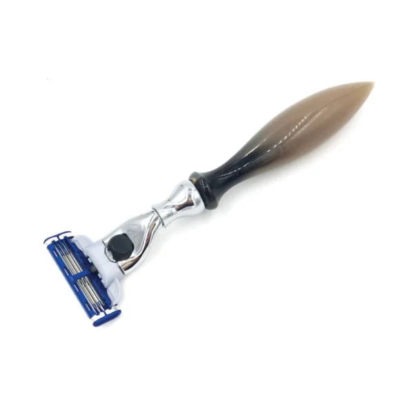 Experience a smooth and efficient shave with the Parker 50M Ox Horn Triple Blade Razor. This unique razor features a genuine ox horn handle and is compatible with Gillette Mach 3 cartridges.