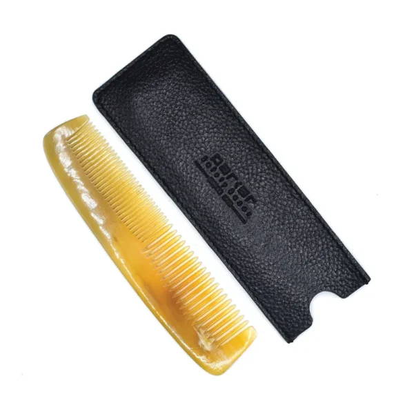 Experience the luxury of natural hair care with the Parker Ox Horn Pocket Comb. This handcrafted comb, made from genuine ox horn, detangles and styles your hair while adding a touch of elegance to your grooming routine.