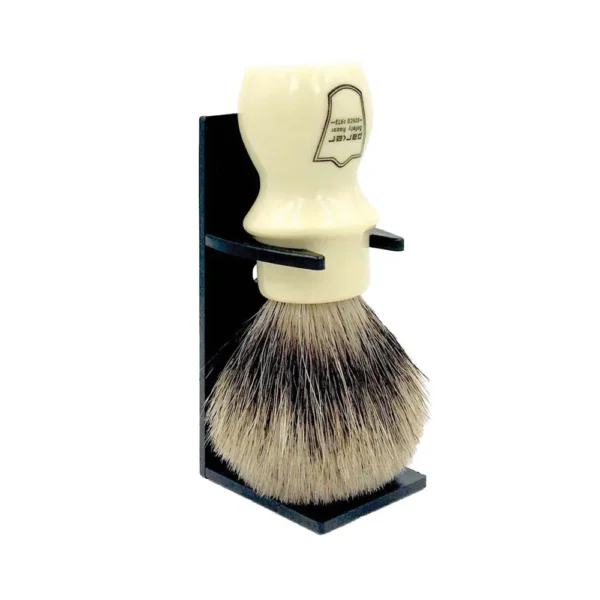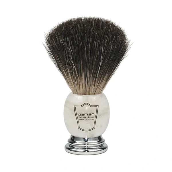 Parker Black Badger Shaving Brush – Ivory Handle + Stand
