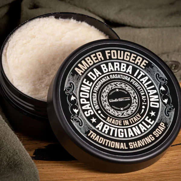 Experience the captivating scent of Amber Fougère with The Goodfellas' Smile shave soap. This Italian-crafted luxury soap delivers a rich, protective lather and a complex, sophisticated fragrance.