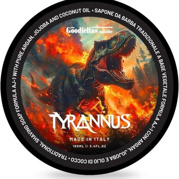 Experience the bold, rich lather of The Goodfellas' Smile Tyrannus Luxury Shaving Soap, crafted with a 100% vegan formula. Enjoy supreme glide, hydration, and a captivating scent.