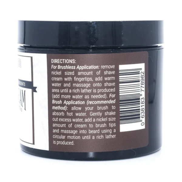 Directions: For best results, use a wet shaving brush to create a rich lather. Alternatively, apply cream directly to the face and massage with warm water.