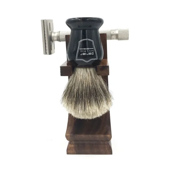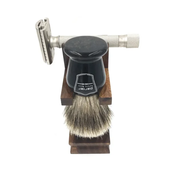 Upgrade your shaving routine with our elegant mission-style wood razor and brush stand. Crafted from high-quality hardwood, this stand adds warmth and character to your bathroom. Designed to hold your razor and brush securely, it promotes optimal brush drying to extend its life. The stand’s sturdy construction ensures stability and durability.