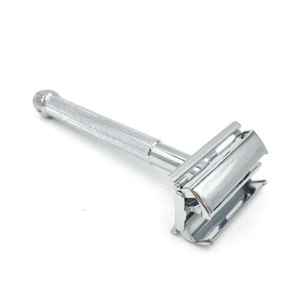 Indulge in the timeless art of wet shaving with the Parker 29L Unisex Safety Razor. Crafted with a solid brass frame and a sleek chrome finish, this razor combines durability and style. The long, textured handle provides exceptional control and maneuverability, making it suitable for both men and women.
