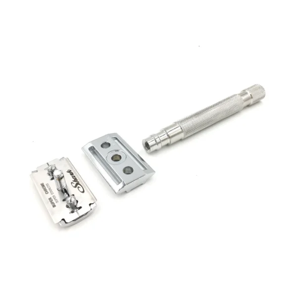 • Razor Type: Three-Piece Safety Razor with Closed Comb Chrome Plated Head