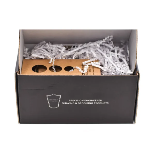 Elevate your grooming routine with the Parker 66R Luxury Shave Set. This premium collection includes a classic safety razor, a luxurious badger hair brush, and a stylish stand for a truly exceptional shaving experience.