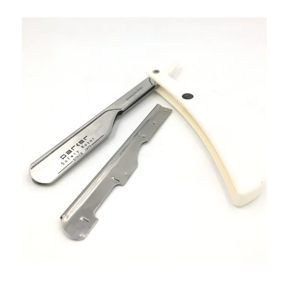 Be the first to review “Parker PTW Push Type White Handle Straight Barber Razor” Cancel reply