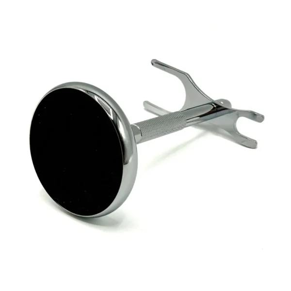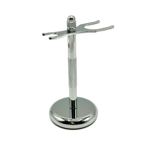 Enhance your shaving routine with the Parker Deluxe Chrome Razor & Brush Stand. This stylish and functional stand not only displays your grooming essentials but also ensures proper drying of your shaving brush, prolonging its life.