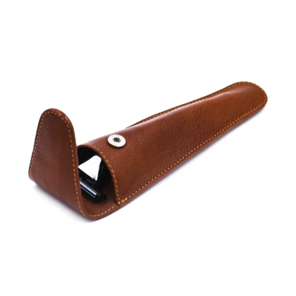 Ensure the safety and longevity of your razor with the Parker Saddle Brown Leather Razor Case. Crafted from high-quality leather, this case provides reliable protection for your shaving tool while traveling or storing at home.