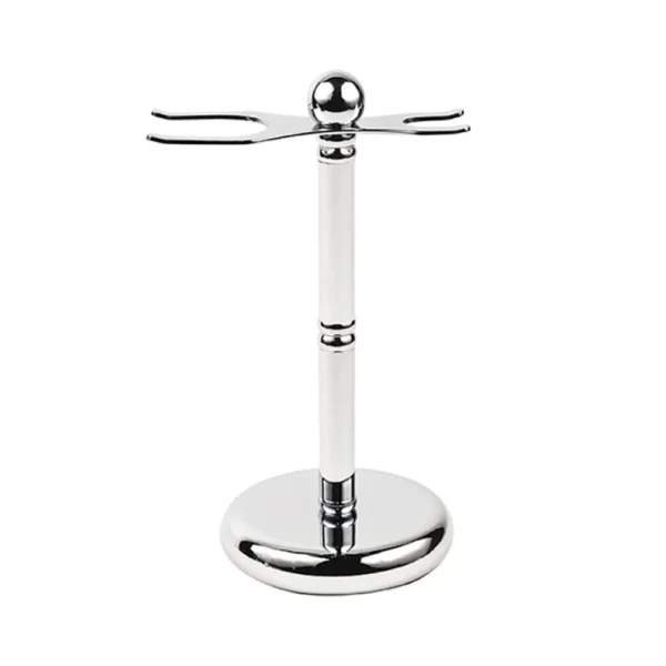 🪞 Matching Chrome Stand – stores both razor and brush upright to dry properly