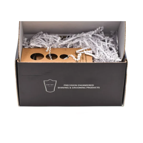 The set also includes a Parker pure badger shaving brush, ideal for whipping up thick, cushioning lather while gently exfoliating your skin. A matching chrome-plated brush and razor stand completes the package, allowing for hygienic drying and elegant countertop storage.