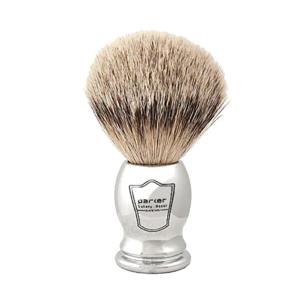 Elevate your grooming routine with Parker’s Chrome Handle Silvertip Badger Shave Brush. Experience the difference a truly exceptional shaving tool can make.