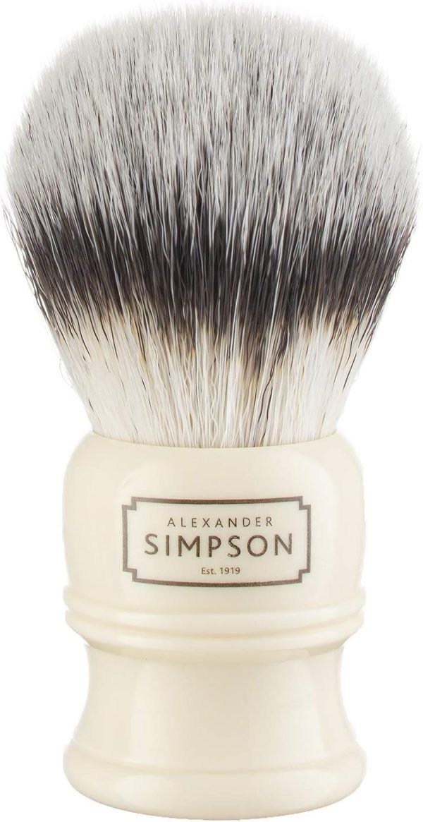 The Simpson Trafalgar T1 is a compact, premium-grade synthetic shaving brush with an ivory handle. Ideal for travel or daily use, it delivers rich lather with ease.
