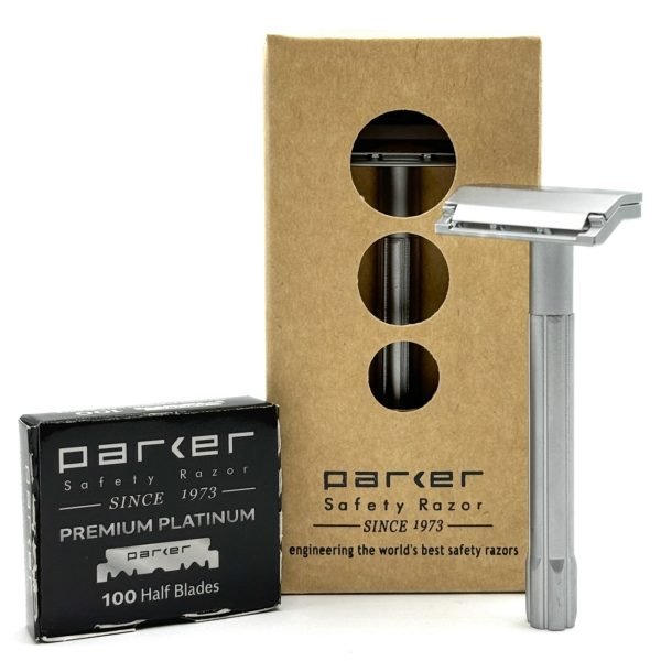 *Comes with 100 Parker premium platinum half double edge safety razor blades – enough to last for many months of smooth shaves.*