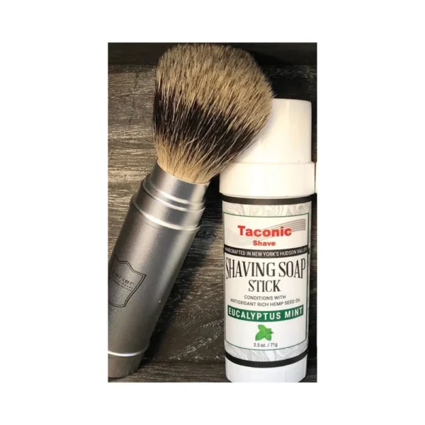 The Taconic Eucalyptus Mint Shave Stick offers a refreshing and invigorating shave with its natural ingredients and convenient stick applicator. The Parker Travel Shave Brush, crafted with 100% pure badger bristles, creates a rich lather for a comfortable and close shave. Together, these two products provide a complete shaving solution for the modern traveler.