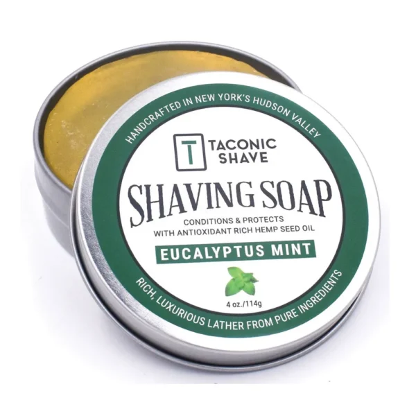 Experience the invigorating power of eucalyptus and mint with Taconic’s natural shaving soap. This handcrafted soap creates a rich, protective lather for a smooth and refreshing shave.