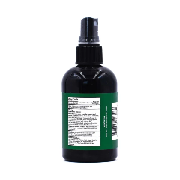 • Inactive Ingredients: Aloe Barbadensis Leaf Juice, Witch Hazel, Glycerin, Coconut Oil, Eucalyptus Oil, Peppermint Leaf Oil, Spearmint Leaf Oil, Rosemary Leaf Oil, and Polysorbate