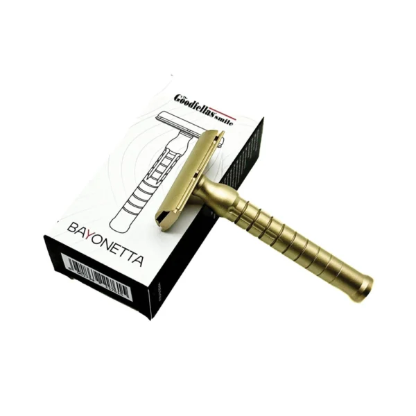 Elevate your shaving routine with The Goodfellas’ Smile Bayonetta Brass Safety Razor. This precision-engineered Italian razor combines vintage style with modern craftsmanship for a superior shaving experience.